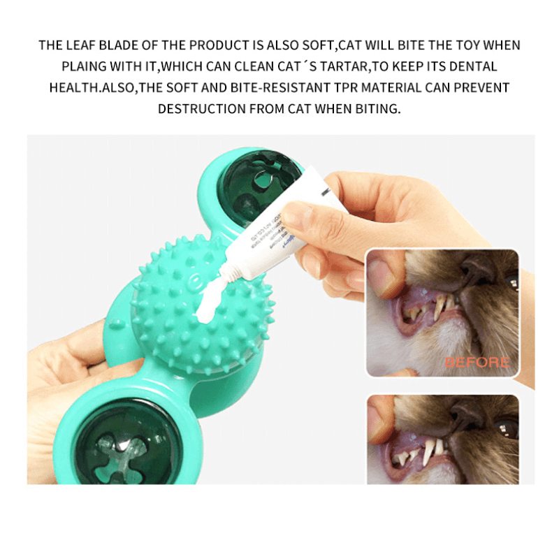 - 2 in 1 Cat Groomer Toy: Not a funny rotating windmill toy that can play with your cat, but also a cat self grooming brush.